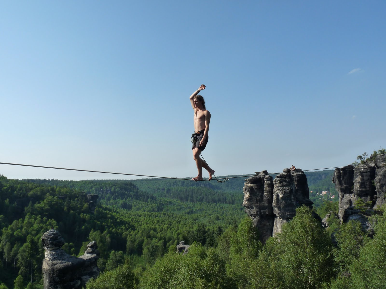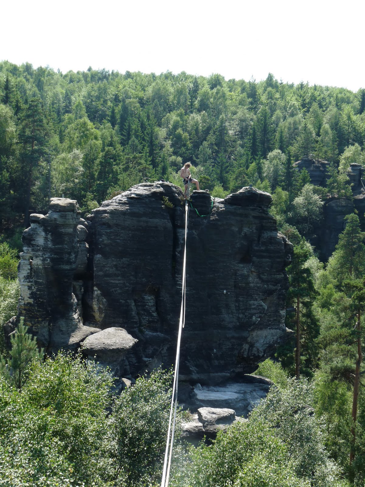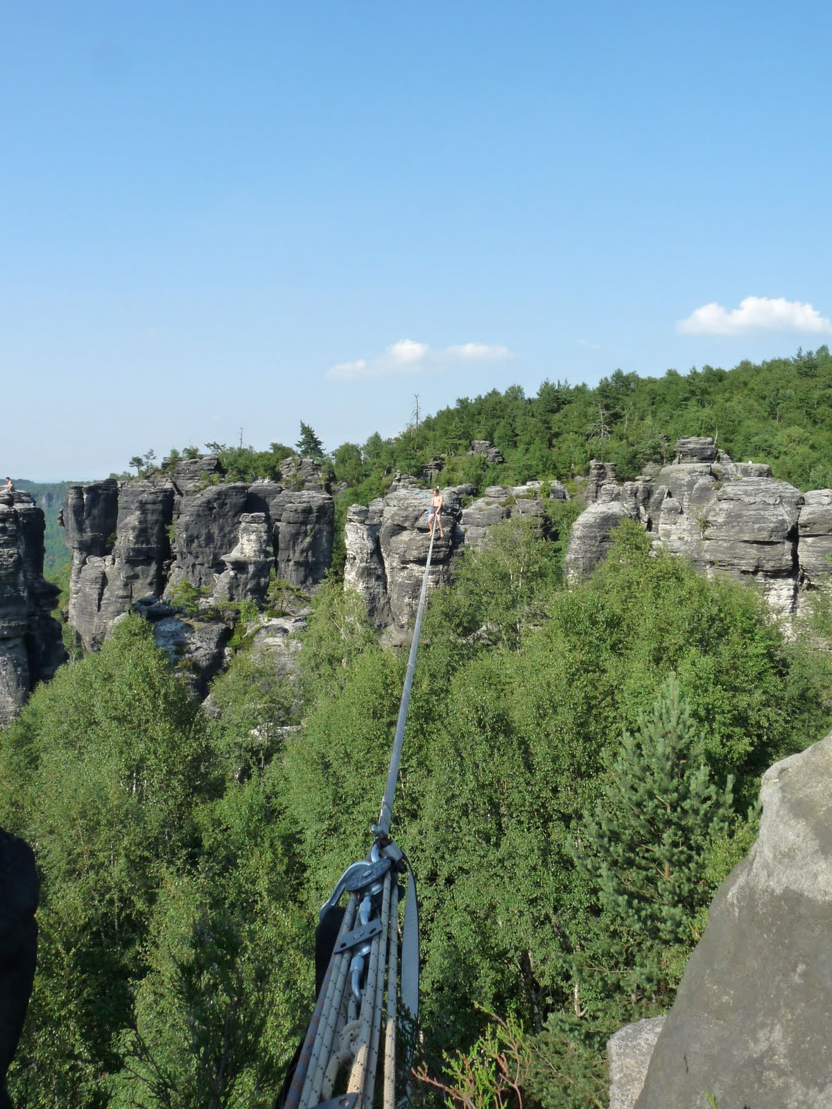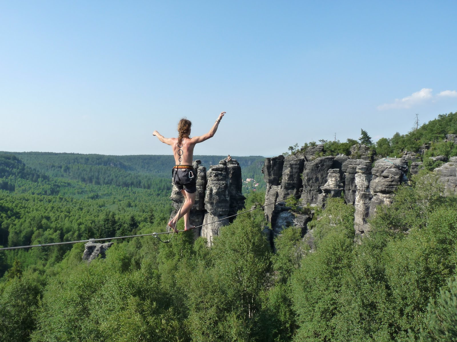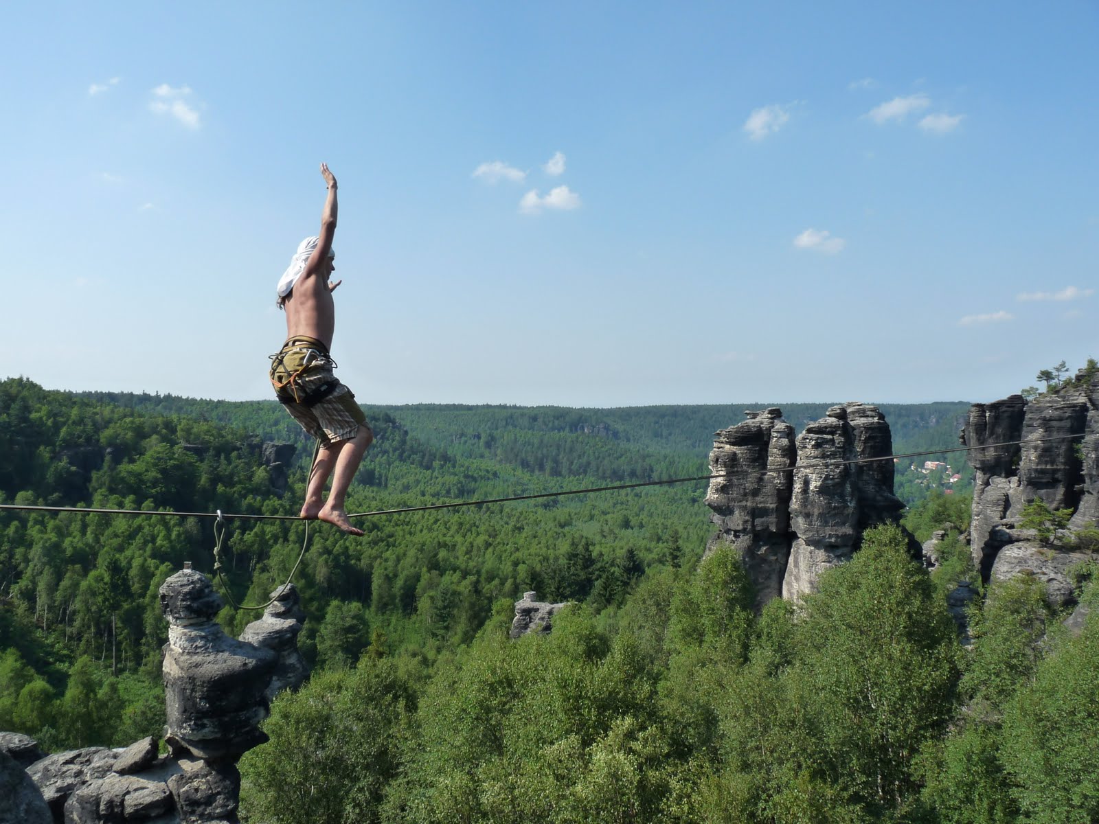 V půlce července jsme s Kwjetákem udělali novou highline v Ostrově – Malý Huhulák. Délka je asi 35metrů, výška cca 15m. Nachází se v Himmelraichu a půjdou tam i další a delší hajlajny (až do 60m). Nakonec přešel jen Kwjet a to hned několikrát.